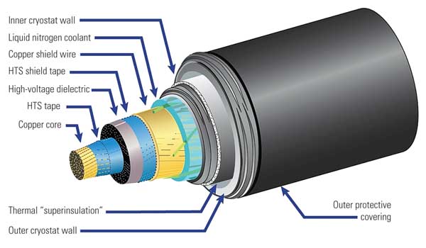 مجله پاورمگزین با جک مک کال ، مدیر توسعه کسب و کار شرکت ابررسانای آمریکا (American Superconductor) مصاحبه ای انجام داده است. این کمپانی مسئول توسعه کابلهای جدید HTS بوده است. وی می گوید:"دانستن اصول کار کابلهای HTSنقطه خوبی برای بحث درباره مزایای آن است. این کابلها دارای 4 مشخصه هستند که آنها را از کابلهای معمولی مسی متمایز می کنند:1- ظرفیت انتقال توان بالا.2- امپدانس خیلی کم.3-سادگی نصب و راه اندازی.4- انتخاب گزینه محدود کننده جریان خودکار.مک کال توضیح می دهد که ظرفیت انتقال بالا به کابلهای HTS با هر ولتاژی این مزیت را می دهد تا 150 برابر توان را نسبت به سیمهای مسی مشابه انتقال دهد. برعکس، این امکان وجود دارد که یک کابل HTS بتواند در ولتاژی کمتر ،نسبت به کابلهای مسی، کار کند. به عنوان مثال، یک کابل 15کیلوولت HTS می تواند 100 مگاوات توان را انتقال دهد که برای انتقال این توان با کابلهای مسی باید از کابلی با ولتاژ69کیلوولت استفاده کنیم.امپدانس کمتر کابلهای HTS، در مقایسه با کابلهای مسی، سبب می شود که تلفات کمتری در شبکه داشته باشیم. در یک شبکه کابل HTSبه دلیل امپدانس کمتر جریان مسیرهای موازی خود را به خود جذب می کند و توان تلف شده در کابلهای موازی خود را نیز کاهش می دهد. البته توان استفاده شده در سیستم خنک کننده کابلهای HTSمقداری از این مزیت را خنثی می کند.براساس اظهارات مک کال ، 2مشخصه کابلهای HTS در کنارهم نیازهای نصب آنها را کاهش می دهند. اولین مشخصه این است که کابلهای HTS میدان مغناطیسی اندکی تولید می کنند. این امر نیازهای عملیاتی را کاهش می دهد و نیاز به کم کردن ظرفیت کابلها را هنگامی که قرار است در کنار دیگر کابلها یا در کانالهای زیرزمینی قرارگیرند برطرف می سازد. مزیتهای زیست محیطی و عمومی ناشی از فقدان میدانهای مغناطیسی نیز اینجا ظاهر می شوند. در ثانی، هنگامی که کابلها در لفاف سیستم خنک کننده قرارمی گیرند نیازی نیست تا ظرفیت کابل را به دلیل دفن در خاک، عمق و... کمتر از حد استاندارد در نظر بگیرند. بنابر این، کابلهای HTSدر مکانهایی که حق مالکیت صاحبان اماکن به دارندگان شبکه برق فشار می آورند بهترین گزینه هستند.مک کال اشاره می کند که یک اختراع مهم دیگر شرکت او طراحی کابلهایی با امکان محدود کردن جریان خطا هستند. این کابلها در هنگام کار امپدانس بسیار اندکی دارند اما هنگامی که خطایی در شبکه رخ می دهد و جریانهای اتصال کوتاه زیادی باید از کابل عبور کنند کابلهای HTSمقاومت بسیار زیادی از خود نشان می دهند که منجر به کم شدن جریانهای اتصال کوتاه می شود.